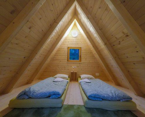 Cena vsebuje stroške uporabe hišice (ležišč s posteljnino, elektrike in končnega čiščenja), souporabo sanitarij in stroške namestitve. V hišici je možna namestitev 4 ležišč (2×90*200 cm in 2×70*200 cm).